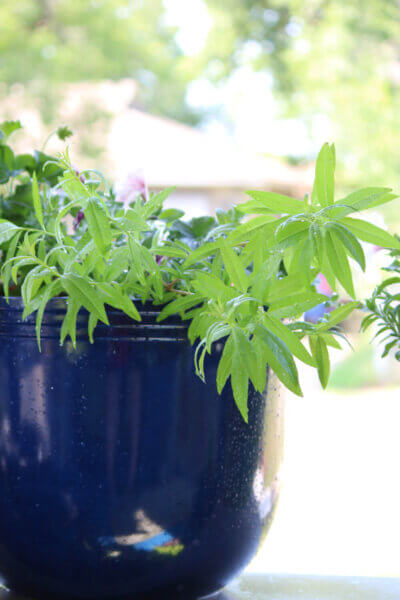 As many of you already know, I grow lemon verbena, as well as pineapple sage, every year. To grow lemon verbena, choose a container with ample drainage holes and fill the pot with a soil mix.
