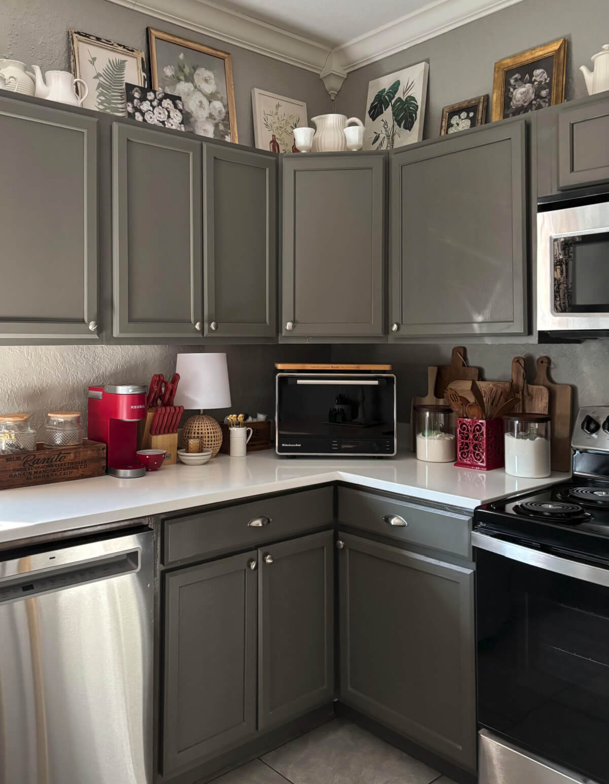 Every time I see a picture of your kitchen I love it more! The cabinet color is so pretty! I bet the kitties love watching the birds. Mine use to chatter at them. What a strange sound! So long ago now!