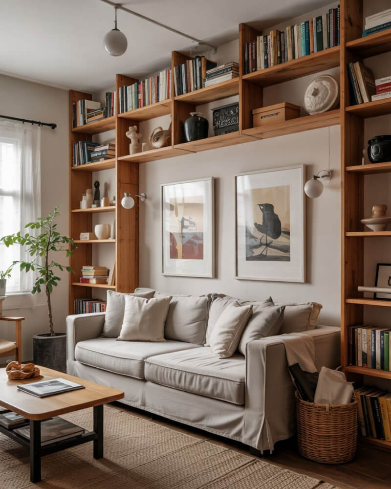 Bookshelves Behind Couches