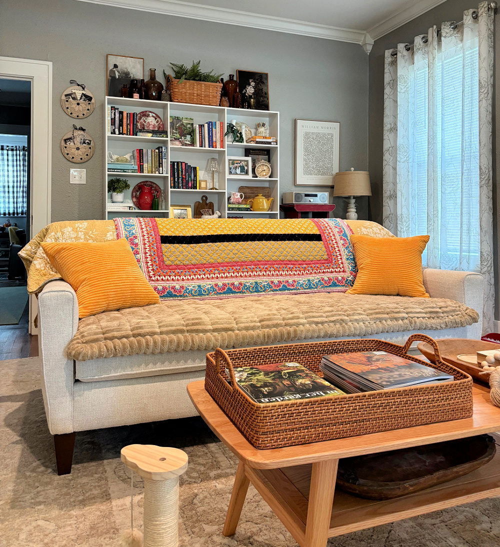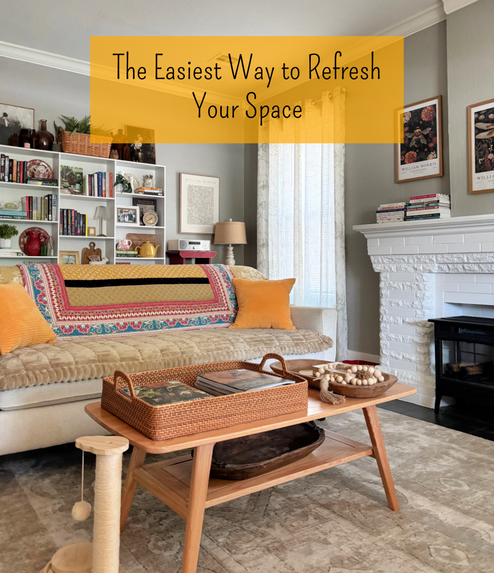 The easiest way to refresh your space with minimal effort is to change the removable elements on your furniture. I do this by switching quilts on my couch and pillow covers on my throw pillows.